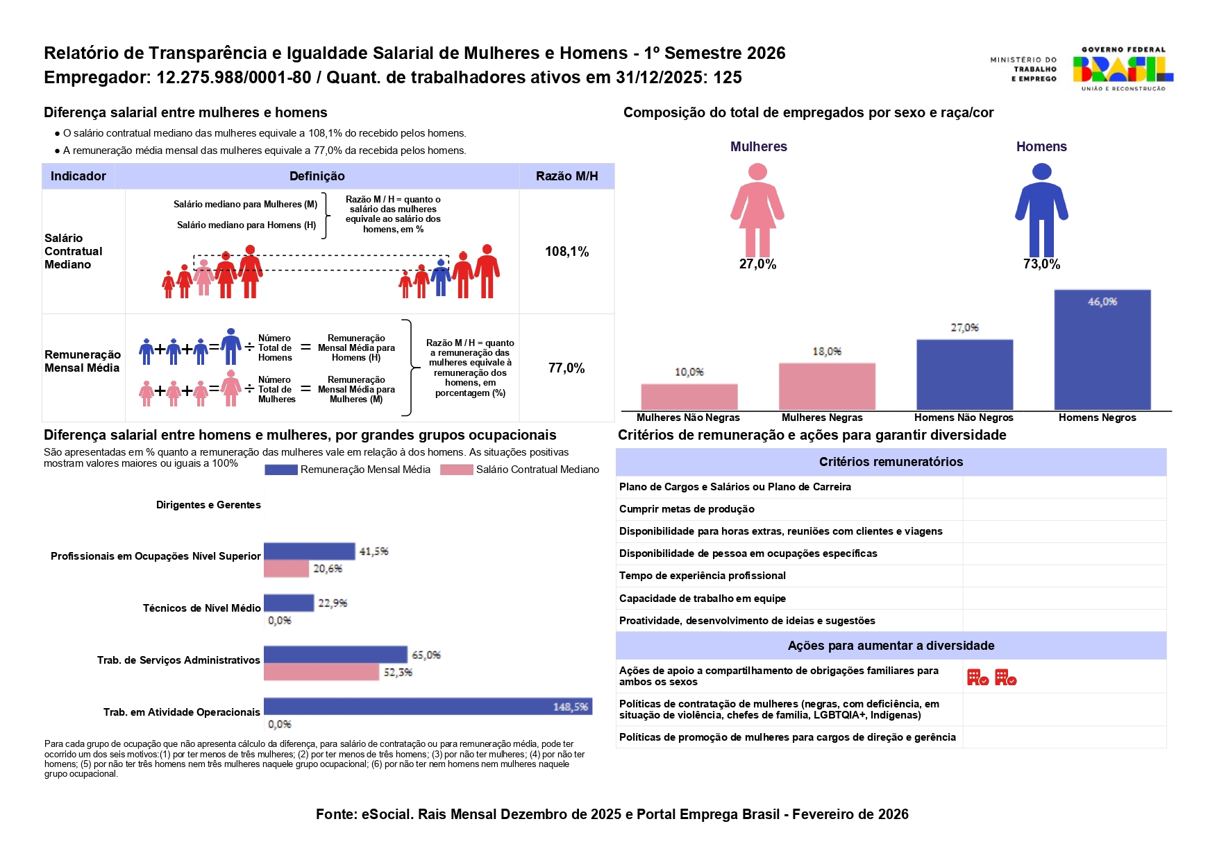 Visando estar de acordo com o que preconiza a Lei da Igualdade Salarial (Nº 14.611/2023) a Importadora Volkswagen divulga, aqui em seu canal oficial, o seu relatório e transparência do primeiro semestre de 2026, obrigatório para empresas com 100 ou mais empregados. O objetivo é corrigir desigualdades de gêneros e garantir que os critérios de remuneração entre homens e mulheres sejam igualitários.